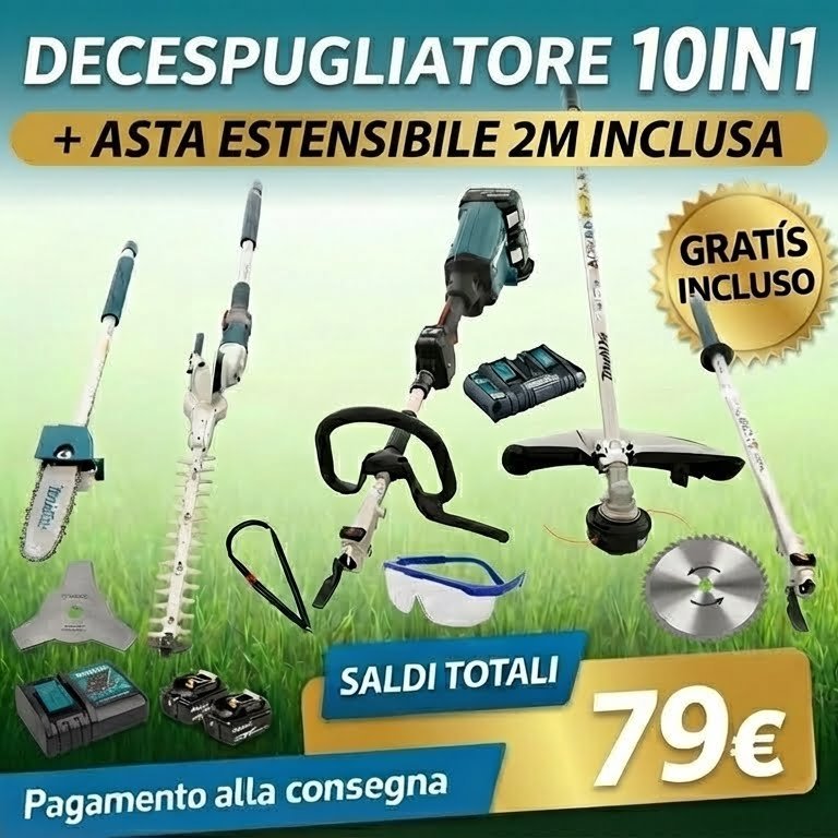 Ordinando oggi riceverai Decespugliatore Professionale Multifunzione allo straordinario prezzo di soli 79€ con pagamento alla consegna e Garanzia soddisfatti o Rimborsati!